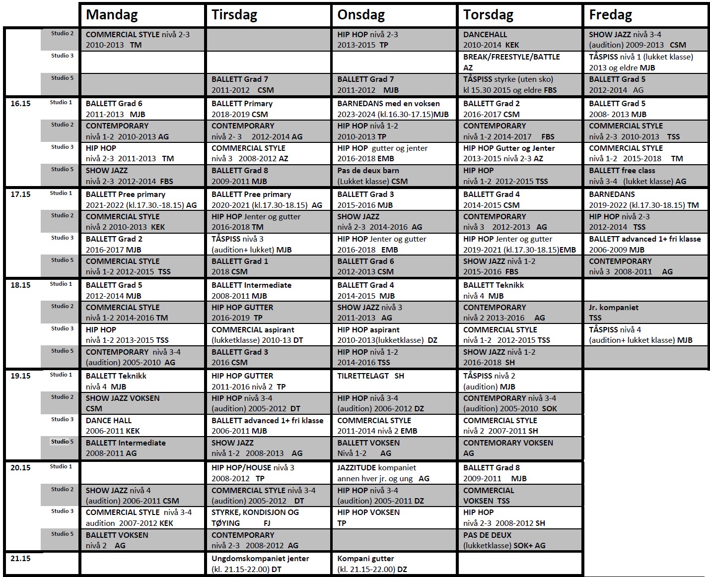 Dansetiler: Hip hop, House, urban, Contemporary og Jazz