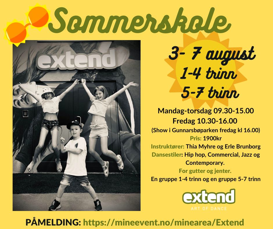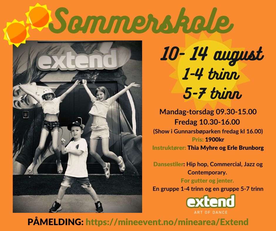 Gjør sommeren uforglemmelig med vår dansesommerskole! Vi inviterer barn fra 1.–7. trinn til en uke fylt med bevegelse, musikk og danseglede. Her får barna utforske ulike dansestiler, utvikle kreativitet og bygge selvtillit – alt i et trygt og inkluderende miljø med dyktige instruktører. Enten barnet ditt elsker å danse fra før eller bare er nysgjerrig på å prøve noe nytt, er dette den perfekte sommeraktiviteten. Nye venner, masse energi og en avsluttende oppvisning gjør opplevelsen komplett! Påmelding her!